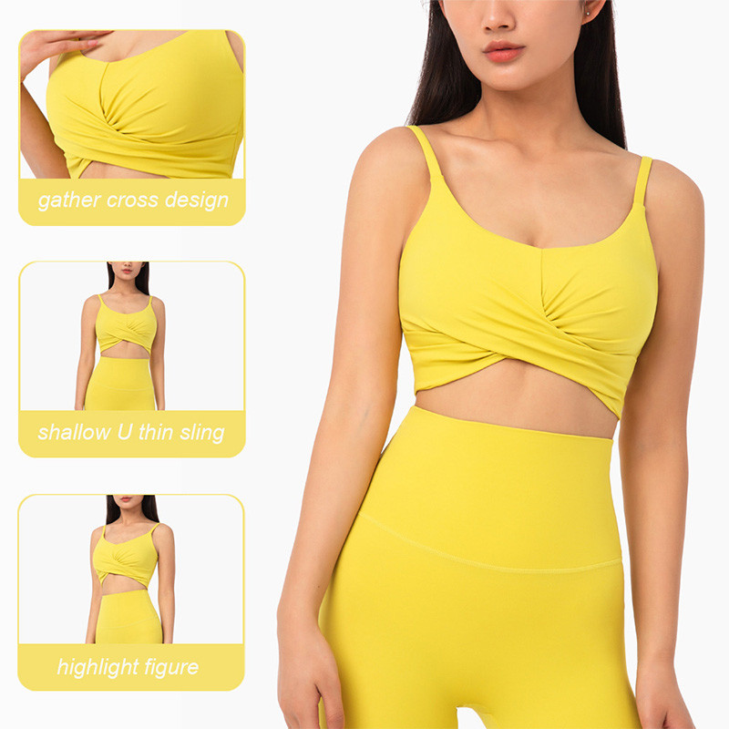Mặt trước chữ thập U mỏng Sling Nữ áo ngực thể thao yoga với miếng đệm ngực có thể tháo rời